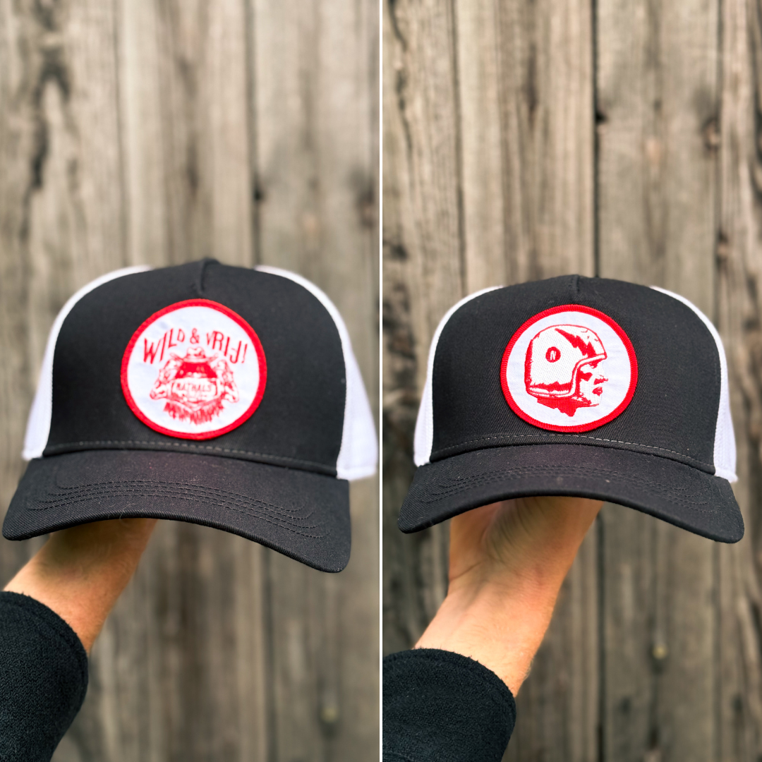 Zwart-witte pet voorzien van een toffe (7 cm) patch: kies voor het Nathals-logo of ga voor Wild & Vri-j.